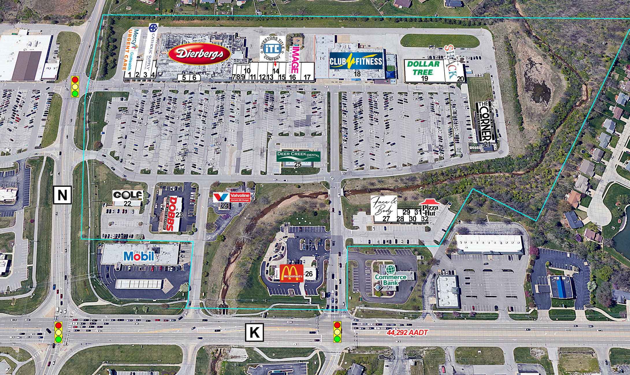 Located at the intersection of Highway K and Highway N. Easy access to Highway K and Highway N with 2 traffic signals serving the Shopping Center. This Shopping Center is anchored by Dierbergs, Club Fitness and Dollar Tree.